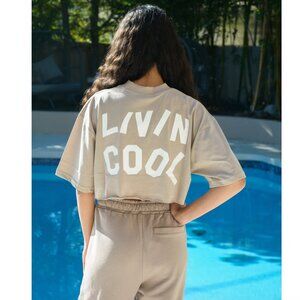 Livin Cool Wavy Crop Tee pale yellow, size XS
