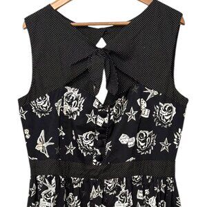 LIVING DEAD SOULS Rockabilly Pin Up Dress Size XXL Roses Dice Sparrow Stars NWOT