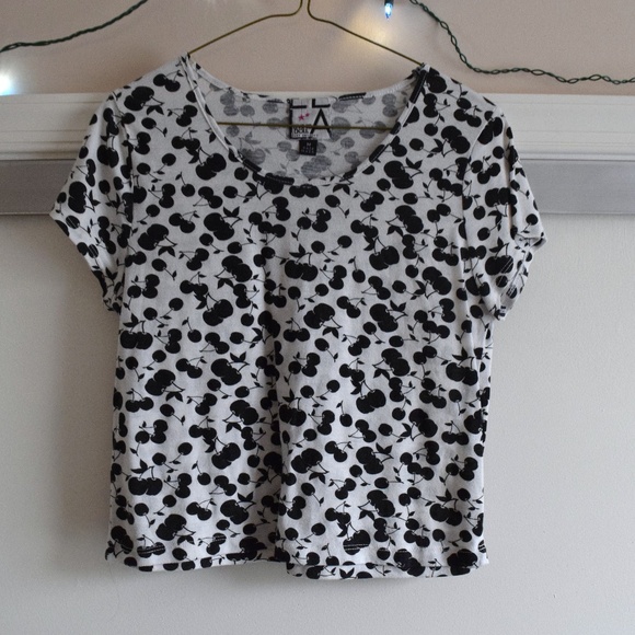 LIVING DOLL Black & White Cherry Crop Top | Size M