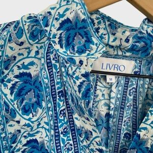 LIVRO Blue White Floral Bohemian Long Sleeve Shirt Size Medium