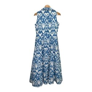 The LIVRO Sleeveless Shirt Dress in Tufts Blue Bouquet, size XS, is a classic elegant piece perfect for any occasion. Made from 100% cotton poplin, this midi-length dress features a collared neckline, button closure, and a flattering silhouette with tufts blue bouquet color. It is lined, has pockets, and is designed for the summer and spring seasons. The dress is sleeveless, made by the LIVRO brand, and crafted with care instructions for dry clean only. Ideal for a timeless and sophisticated look.
