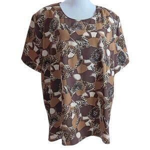 LIZ BAKER Vintage Blouse Top 2X Short Sleeves Animal Print Career Office Event