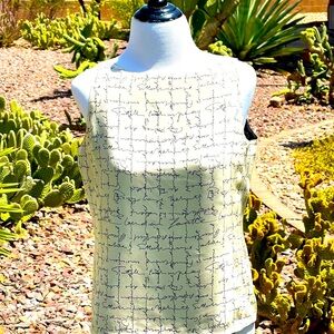 BEAUTIFUL SILK REVERSIBLE TOP, SIGNED SEWED IN TO FLIP DEPENDING UPON WHICH SIDE YOU WEAR, BLACK AND BEIGE ON ONE SIDE, CREAM WHITE AND BLACK ON OTHER, SIZE 8P