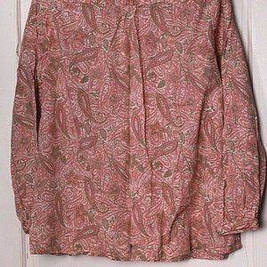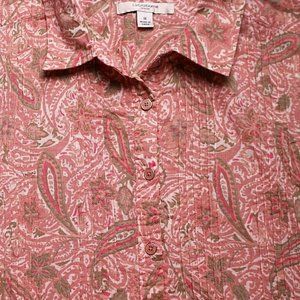 LIZ CLAIBORNE BLOUSE LADIES SIZE M pink green white paisley tiny pleats cotton