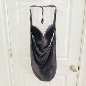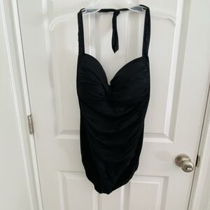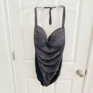 LIZ CLAIBORNE Bathing Suit Womens Size 14 One Piece Solid Black ruched Halter