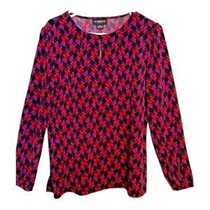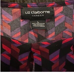 LIZ CLAIBORNE CAREER Women's size L Geometric Print Blouse long sleeves