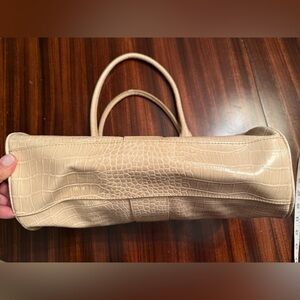 LIZ CLAIBORNE Cream Croc Embossed Faux Leather Top Handle Bag East-West