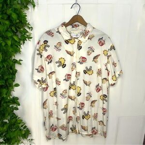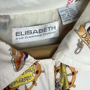 LIZ CLAIBORNE Elizabeth Nautical Novelty Print Beachy 90s Vintage Collard Blouse
