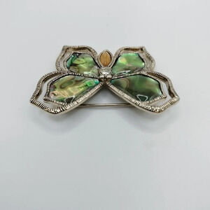 LIZ CLAIBORNE GEM BUTTERFLY PIN BROOCH GOLD TONE IRIDESCENT COLOR WINGS