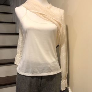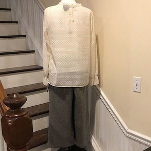 LIZ CLAIBORNE Ivory Pullover Blouse W Scalloped Collar & Cuff Sz Small NWT
