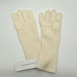 LIZ CLAIBORNE Knit Long Gloves Women’s OS Cream NWT Winter Christmas Warm Soft