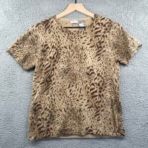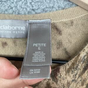 LIZ CLAIBORNE Knit Top Large Petite Animal Print Y2K Western Safari Vtg Sweater