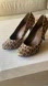 LIZ CLAIBORNE Leather/Suede Leopard Animal Print Wooden Heel 3.5” NWOT Brown Bl…