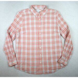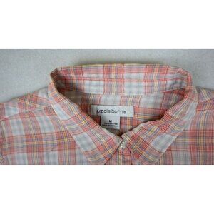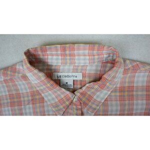 LIZ CLAIBORNE - PINK PLAID LONG SLEEVE LIGHT WEIGHT COTTON BUTTON-UP TOP - M
