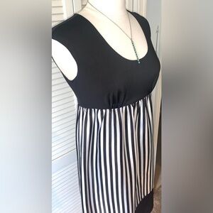 LIZ CLAIBORNE Petite Black White Stripe Print Cap Sleeve A Line Dress 8P