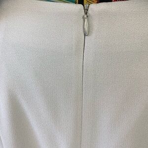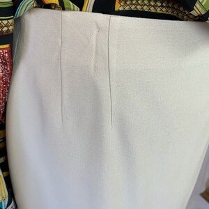 Size 10 classic cream skirt with hidden zipper in excellent condition. Winter white. Measures 16” across at the waist and 24” in length