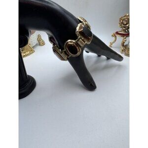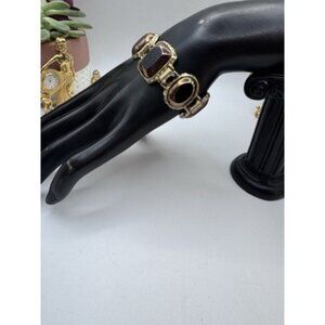LIZ CLAIBORNE Signed LS Purple Glass Cabochons Two Gold Tone Wide Bracelet VTG
