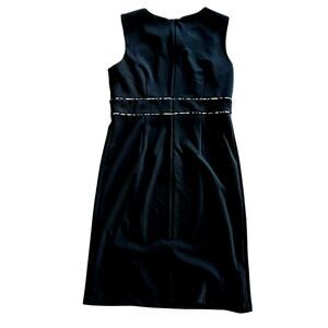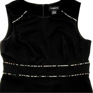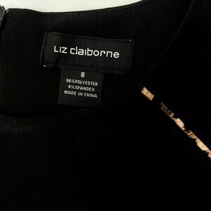 LIZ CLAIBORNE Size 8 Little Black Dress Animal Print Trim Midi Classic Work EUC