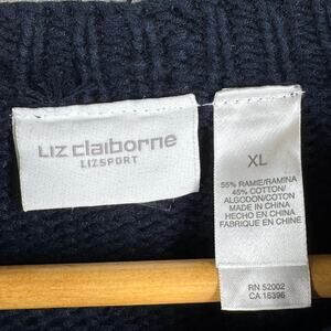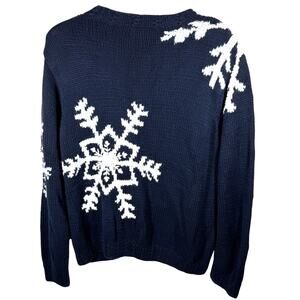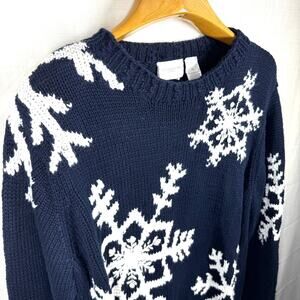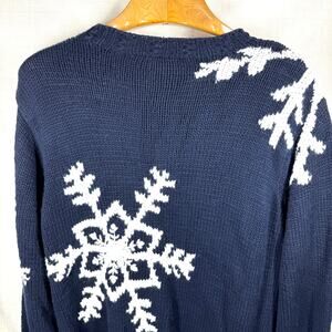 LIZ CLAIBORNE Snowflake Sweater Size XL Navy Blue Cotton Chunky Holiday Winter