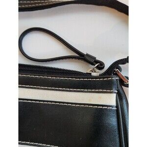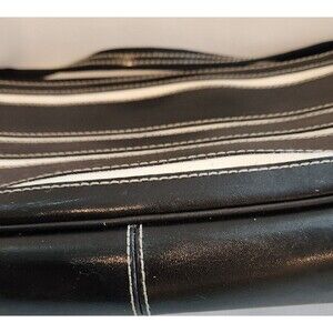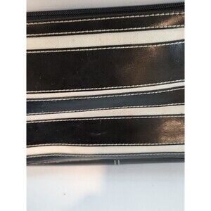 LIZ CLAIBORNE VINTAGE Tote Bag Purse Womens Black White Stripes VEGAN leather