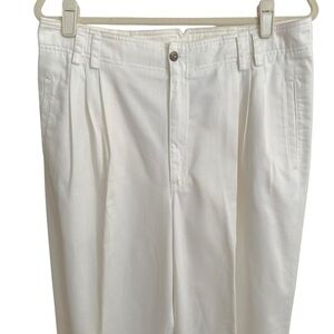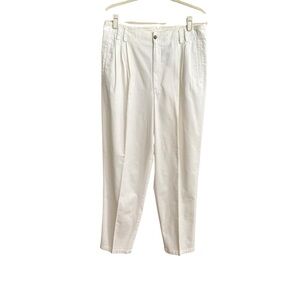 LIZ CLAIBORNE Vintage White Cotton Twill Pleated Pants High Rise Coastal Preppy Size 16