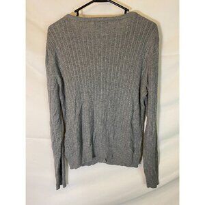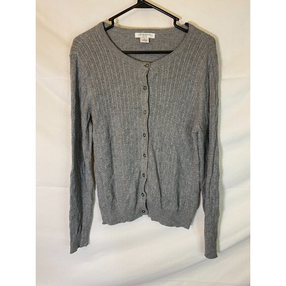 LIZ CLAIBORNE WOMENS SIZE PETITE LARGE GRAY BUTTON UP CARDIGAN SWEATER