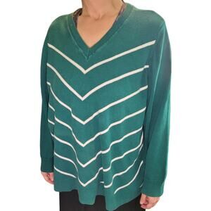 LIZ CLAIBORNE Womens Green Chevron Sweater Sz 2X V-Neck Minimalist Graphic