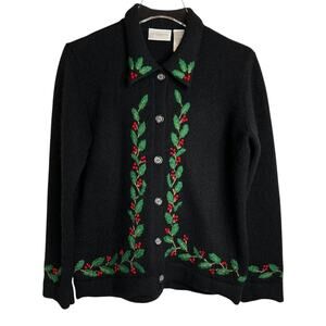 LIZ CLAIBORNE Wool Angora Embroidered Holly Button Cardigan Black Women’s M