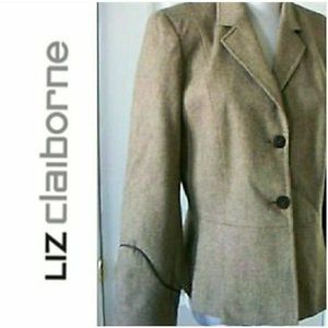 LIZ CLAIRBORNE BLAZER WOOL BLEND BROWN 10 PETITE WOMENS 10P NWOT