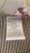 Fabric content is 75% Ramie and 25% Rayon. The color is best described as willow or sage....subdued. Suggested care is machine wash warm and finish with a cool iron if needed. Measurements underarm to underarm are 23" and the length from the center back to the hem is 23.5".....on me (I'm tall) the length is a little short. The sweater is in pristine condition, without stains or flaws.