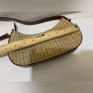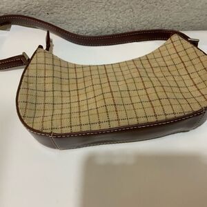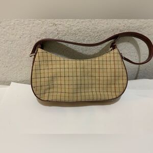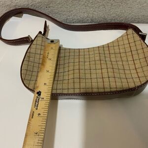 LIZ CLAIRBORNE small hobo bag tweed plaid leather trim handle