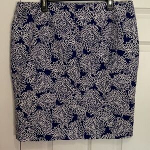 Blue & white floral. Excellent pre-owned condition. Beautiful fun skirt. Fully lined. Zipper back. Back slit.