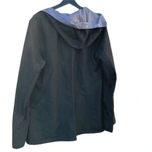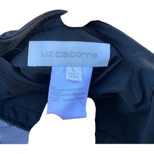 Liz Claiborne women's Large light weight black Jacket with hood, pit to pit 22", length 29 1/2", good condition, smoke and pet free home