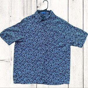 Large mens blue pattern Liz Claiborne shirt great condition. Nice pattern to match navy, jeans or black pants. Close ups best reflect actual color.