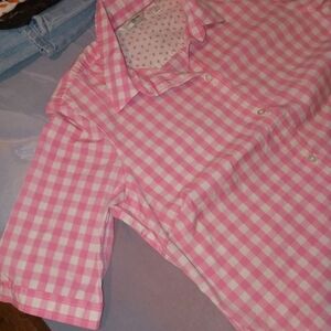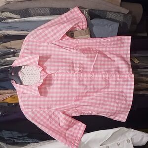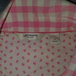 Liz Claiborne short sleeve pink and white checkered button-up shirt.