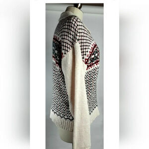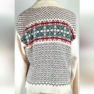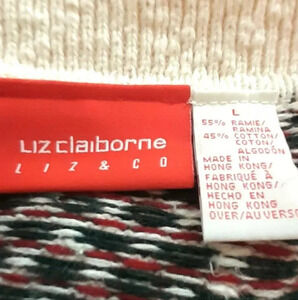 Questions? Leave a comment below!LIZ Clairborne Sweater CHRISTMAS Holiday Cardigan Full Zip Cotton Collar Large