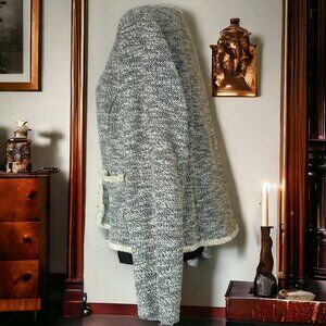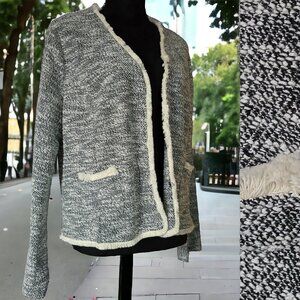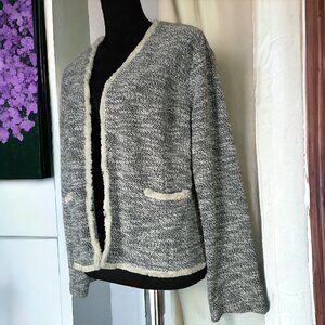 LIZ LANGE (XL) Open Dark Gray Heathered Sweater with Ivory Short Fringe …