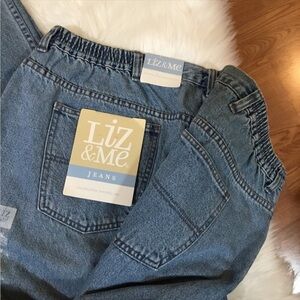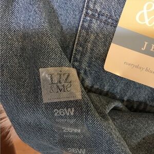 Liz & Me New with tags light denim 26W jeans average 5 pocket belt hoops 2 elastic back on the rear waist band all tags intact with the exception of the price tag approximate waist 21 stretches to 24 rise 14 inseam 29