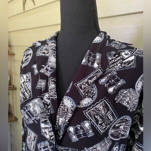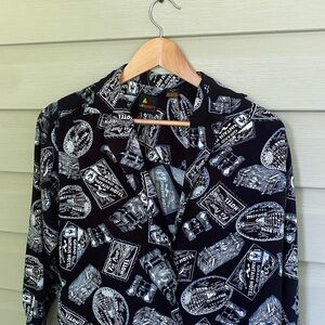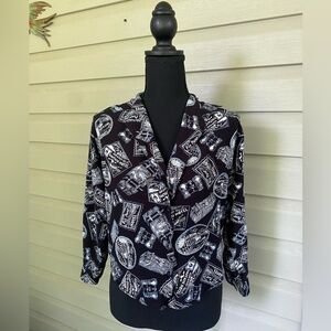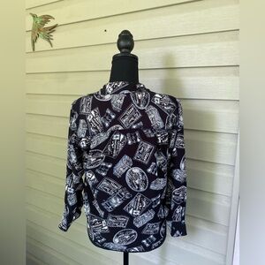 LIZ SPORT rayon button down Vintage Graphic Black & White Shirt travel sz S EUC