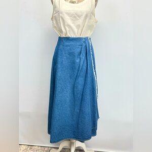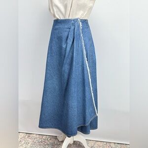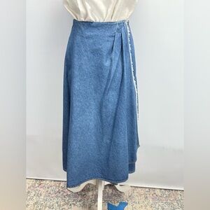 LIZ WEAR Blue Denim raw edge wrap skirt size 8P