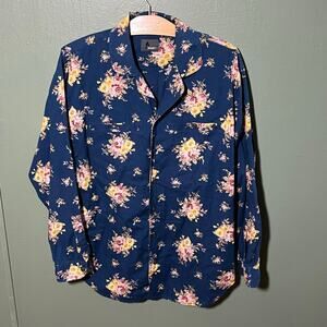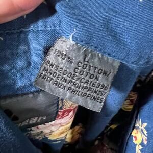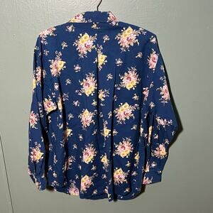 This gorgeous LIZ Wear blouse brings romantic charm to any wardrobe with its stunning navy blue background adorned with delicate pink and yellow rose bouquets. The flowing fabric drapes beautifully while the matching tie belt creates a flattering silhouette that cinches at the waist. Long sleeves with button cuffs offer versatility for layering or wearing solo. The removable fabric belt allows you to style this piece loose for casual comfort or tied for a more polished look. Perfect for transitioning from desk to dinner, this timeless floral print never goes out of style. The quality construction and classic button-front design make this a versatile wardrobe staple. Feminine florals meet practical wearability in this must-have blouse that pairs effortlessly with jeans, slacks, or skirts. The rich navy backdrop makes the blooms pop while remaining sophisticated enough for professional settings.