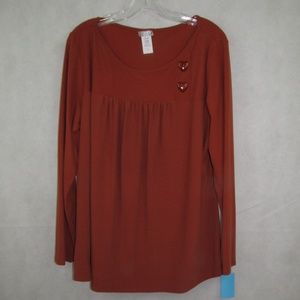 LIZ in LA Long sleeve orange top Sizes 1X 2X and 3X, Stretch. Brand new.