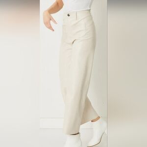 LIZARD THICKET Cream color faux leather wide leg ankle pants. Size Med NWT
