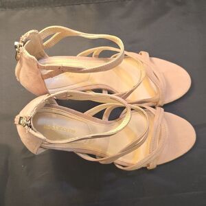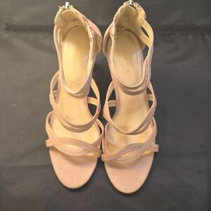 LIZ CLAIBORNE CHANDRA STRAPPY OOEN TOE WOMEN'S LOW HEEL SANDALS SIZE 9M COLOR PALE PINK fabric upper balance man made materials Step out in style with these elegant strappy sandals. Perfect for any occasion, these shoes offer both back zipper closure Slip-on style comfort and sophistication heel height measurements approximately 3"inched THIS ITEMS IS PRE-OWNED EXCELLENT CONDITION WITH ONLY LIGHT SIGNS OF WEAR IF ANY CHECK THE PICTURES