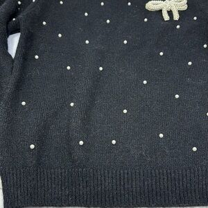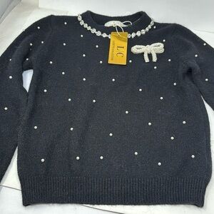 LIZETTE COLLECTION black sweater with pearl-shaped stones on the neck, size M