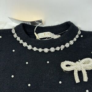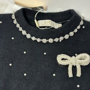 LIZETTE COLLECTION black sweater with pearl-shaped stones and diamond-type stones on the neck, size M