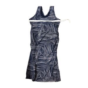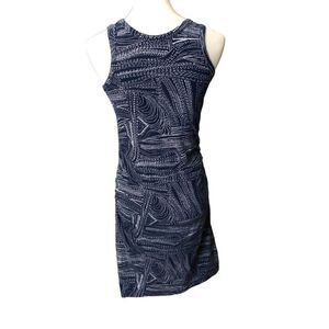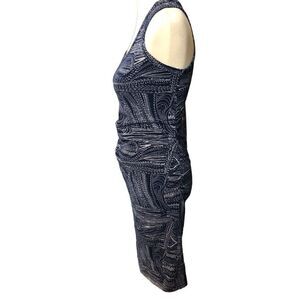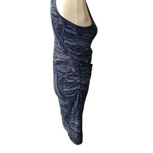 LIZ LANGE navy blue and white sleeveless WOMENS MATERNITY DRESS. Cinched on sides, tank top style maternity dress. Very soft, geometric pattern