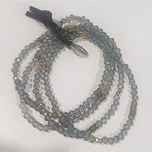 Elegant bracelet featuring shimmering gray beads with gold accents. Perfect for adding a touch of sophistication to any outfit.