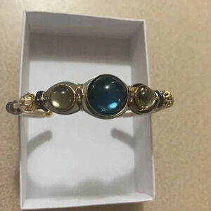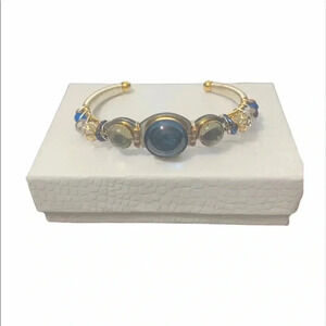 Stunning vintage cuffed bracelet. Handmade and numbered. Hand wire wrapped. Mirrored chrome. Vintage glass stones. Crystal and glass beads. 24k gold plated. From 2013 collection. Will come in box ( not original). Can fit up to wrist 7. Perfect for the smaller wrist.