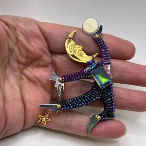 Liztech Moon Dancer Brooch Face Celestial Jeweled Star Jewelry